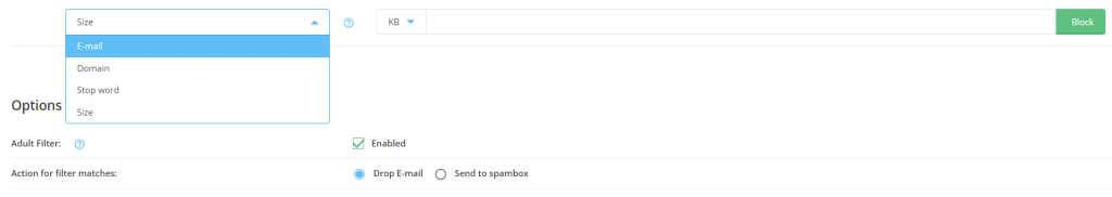 email filter in DirectAdmin